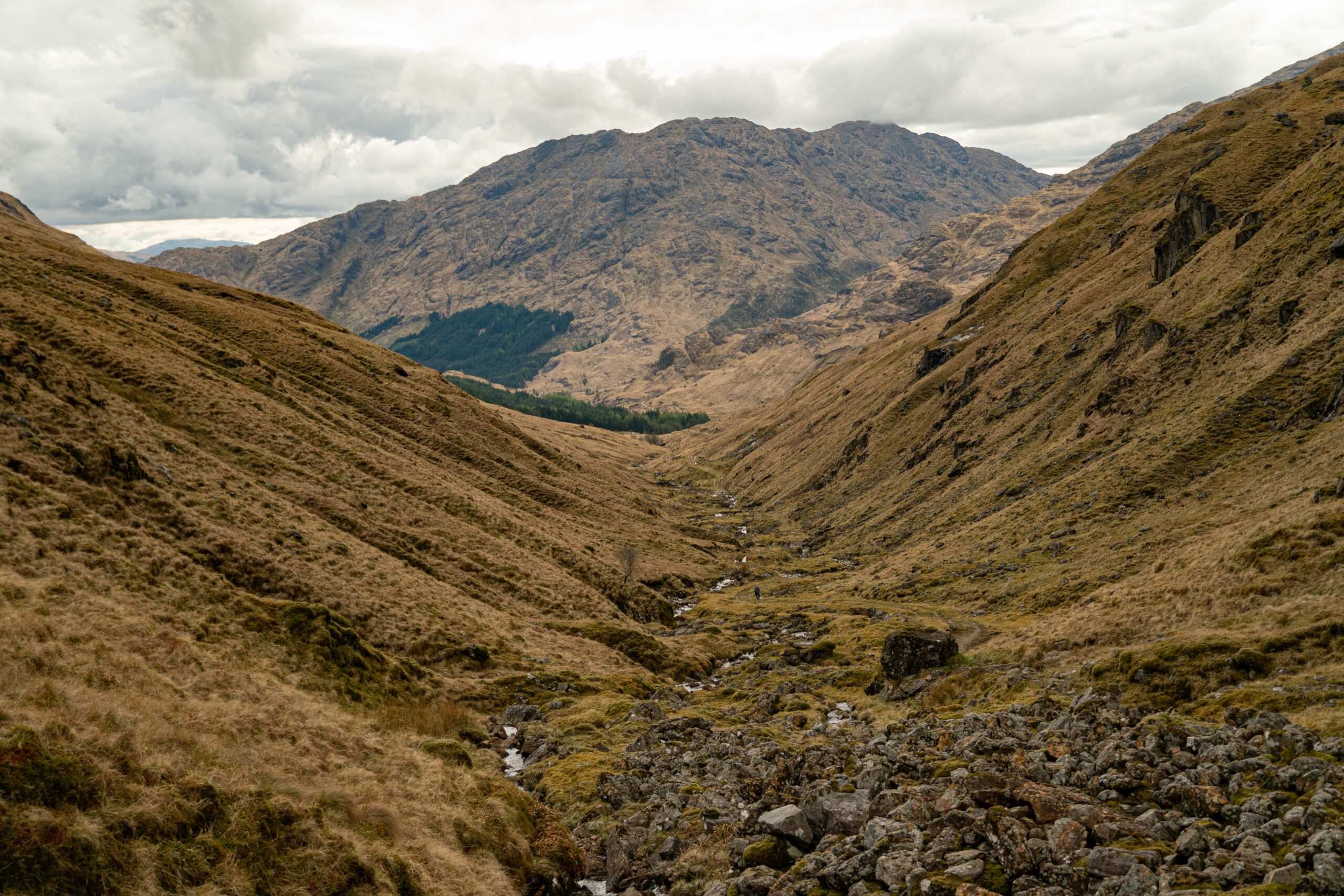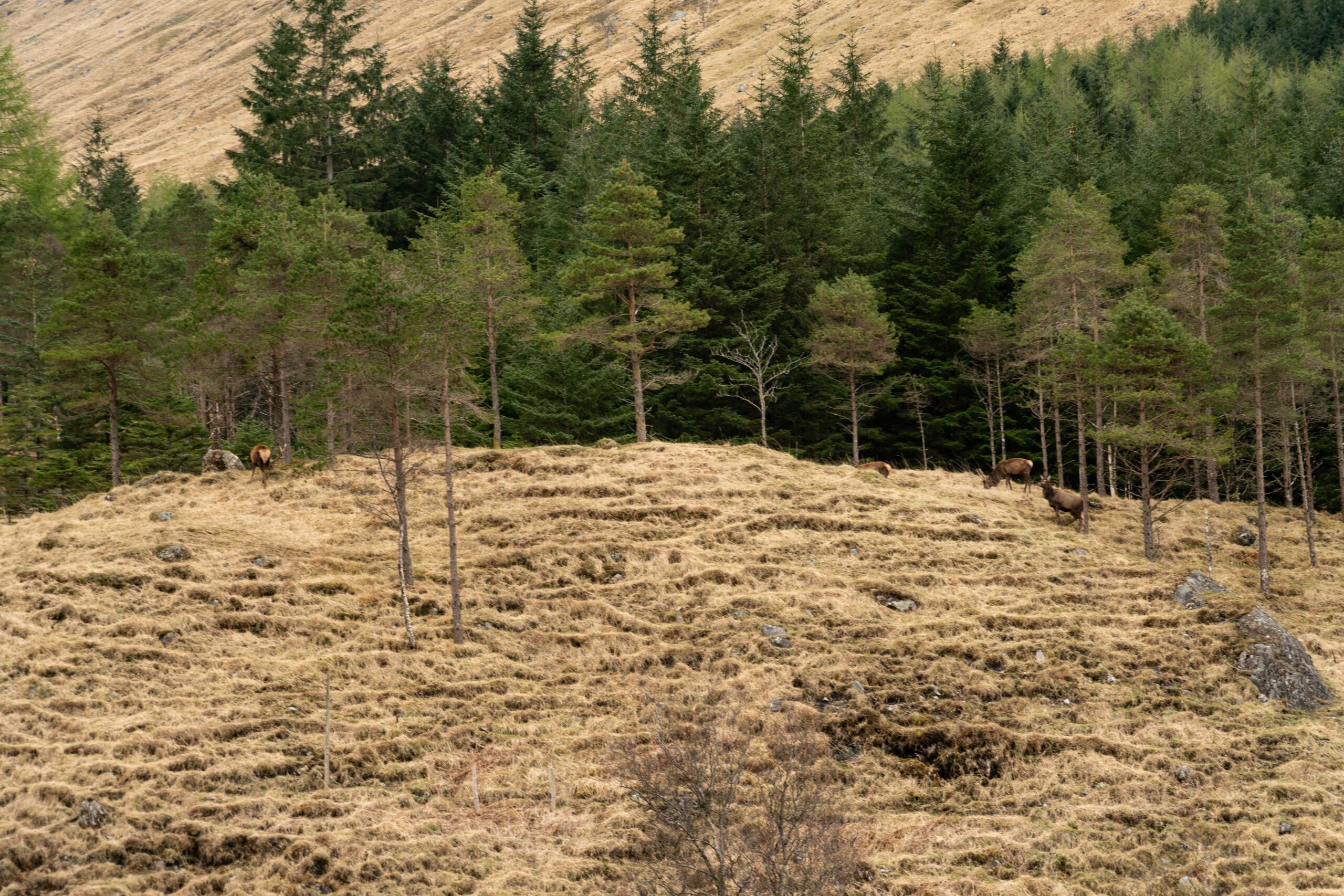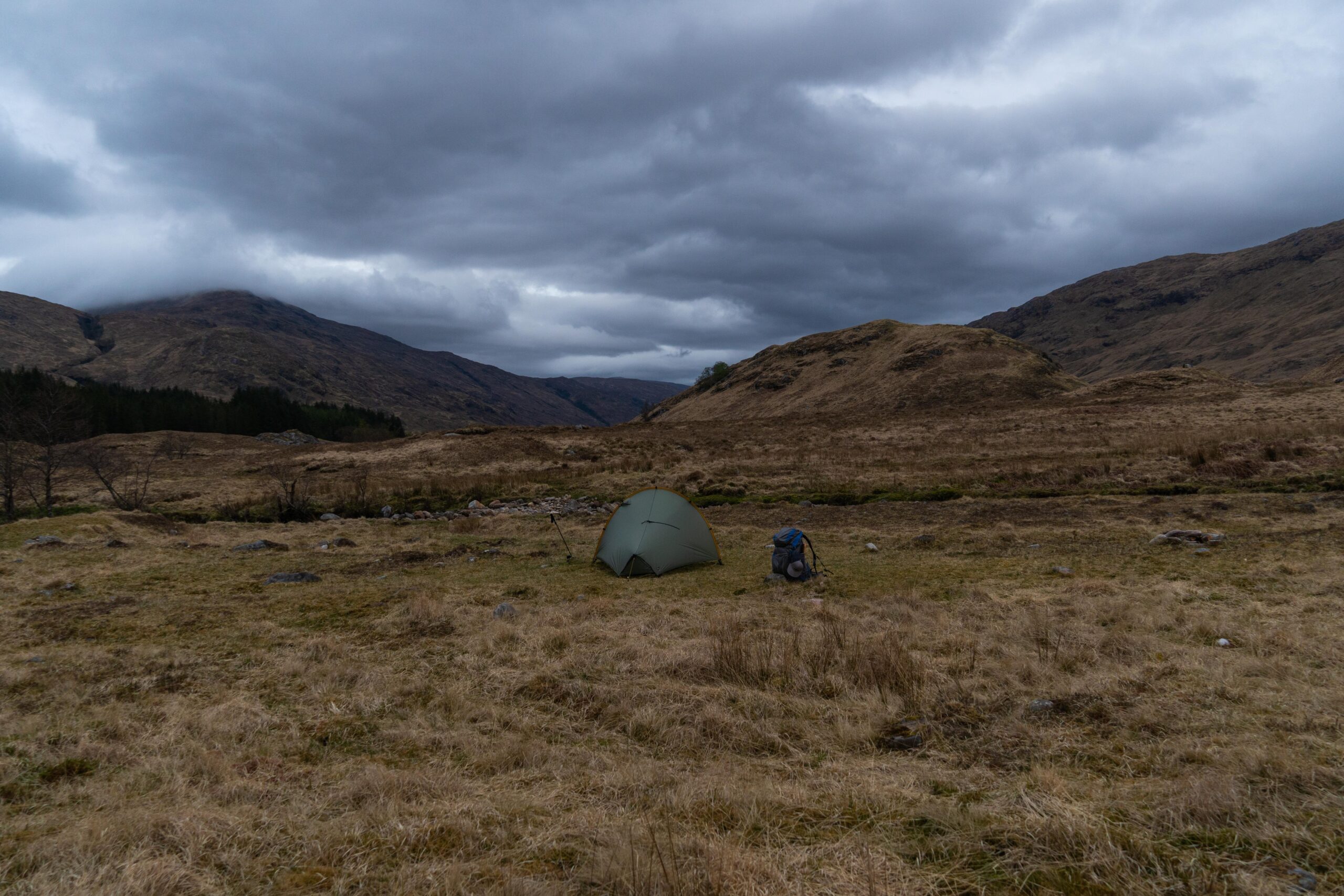 Na een stukje weg draai je het Cona Glen Estate op, door Cona Glen. Een prachtige vallei met een goed 4×4 pad. Aangezien ik een halve wandeldag had, heb ik halverwege de vallei mijn tent opgezet met een prachtig uitzicht op wat herten en Cona river. Het regende zachtjes door – lekker de tent in.