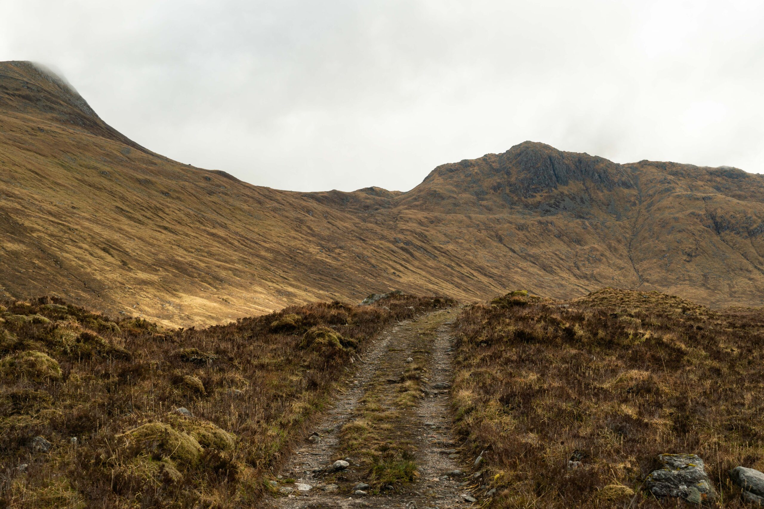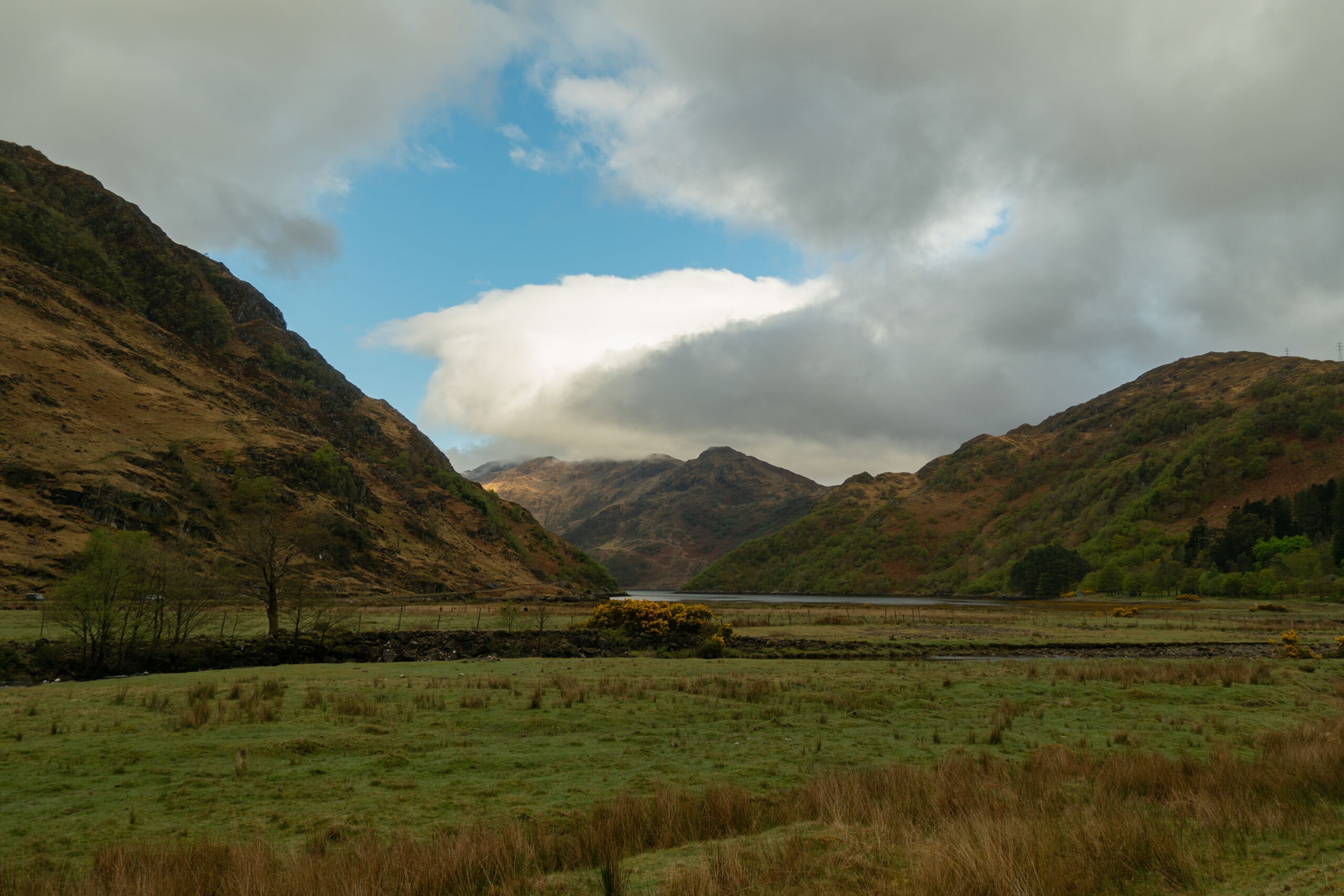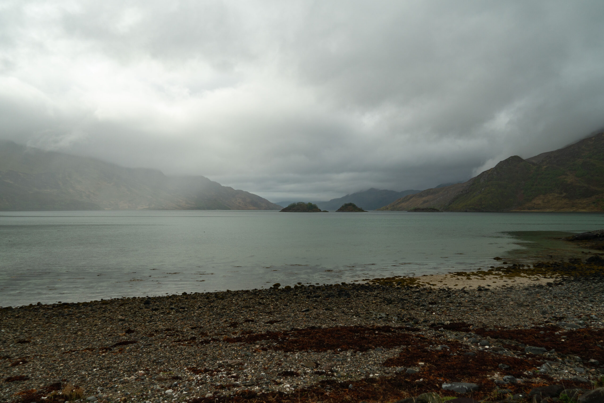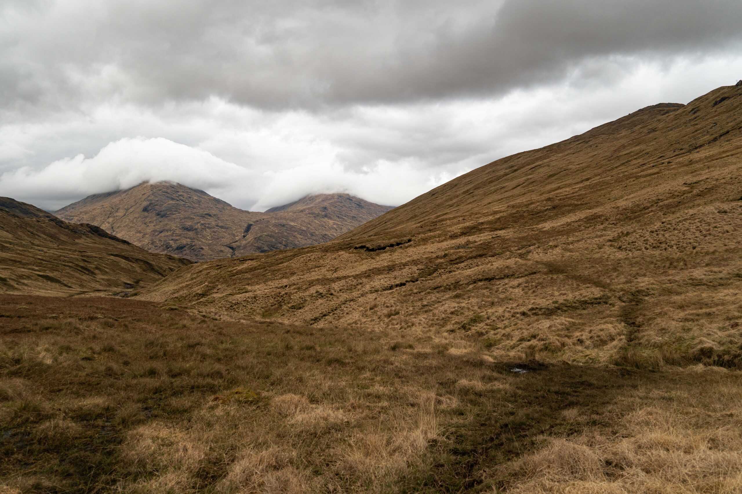 Vanaf Kinlochhourn was het een flinke klim omhoog – door een rivier die voldoende diep was dat de schoenen uitgingen – en volledig padloos door de blubber tot de top. De top van de pas was gehuld in mist en vrij mystiek. Het pad liep onder de top van de Munro door over een alpien landschap en over flinke keien. Eenmaal onder de mist was het uitzicht fantastisch! Vervolgens was het een kwestie van afdalen en nog een klein stukje langs de doorgaande weg om in Morvich uit te komen.