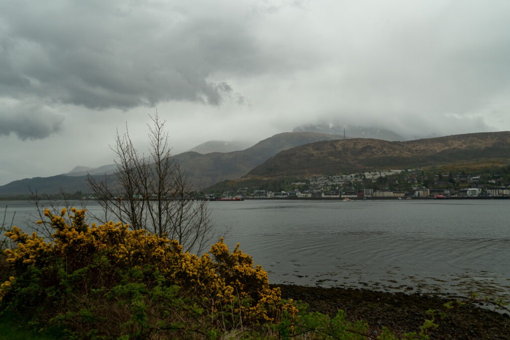 Mijn Cape Wrath Trail avontuur begon in Fort William. Ik vloog vanaf Amsterdam vrij laat op Inverness, waar ik een nacht in een hotel sliep. ’s ochtends nam ik de bus naar Fort William die zo’n twee uur onderweg was. Ik had in Fort William nog een uurtje om gas en een aansteker te halen en mij naar de veerpont te begeven. De Camusnagaul Ferry vaart vier keer per dag en ik nam de vaart rond het middaguur. Aan de overkant en met uitzicht op Fort William ging mijn avontuur van start.