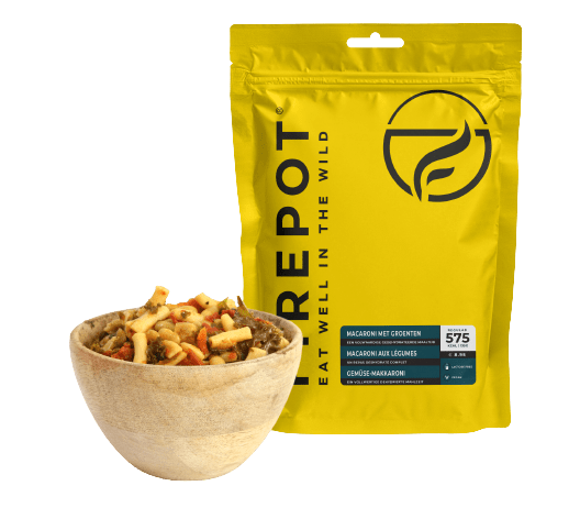 Verwijder de zuurstofvanger uit de maaltijd (klein zakje). Voeg 300 ml kokend water toe voor de maaltijd (tip: vouw het zakje om op het aangegeven waterniveau – dat is makkelijk vullen met de vouwlijn). Goed roeren, verpakking sluiten en 15 minuten wachten. Nog even goed doorroeren en aanvallen!
