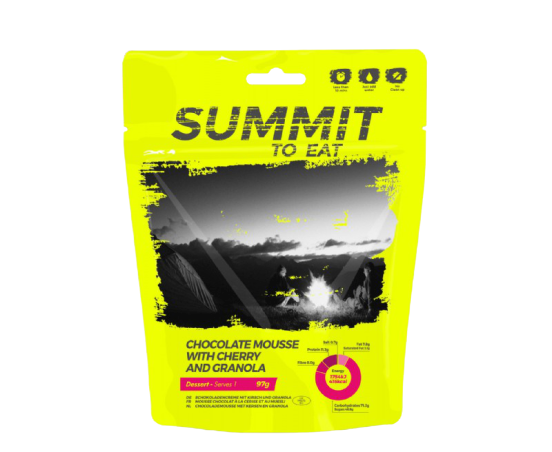 Chocolade Mousse (Witte suiker, volle melkpoeder, cacaopoeder, gemodificeerd zetmeel, rijsmiddel: Natriumbicarbonaat) (83%), Geroosterde Haver Clusters (Haver, suiker, raapzaadolie, Honing) (15%), gevriesdroogde Gesneden Zure Kersen (1,8%)
