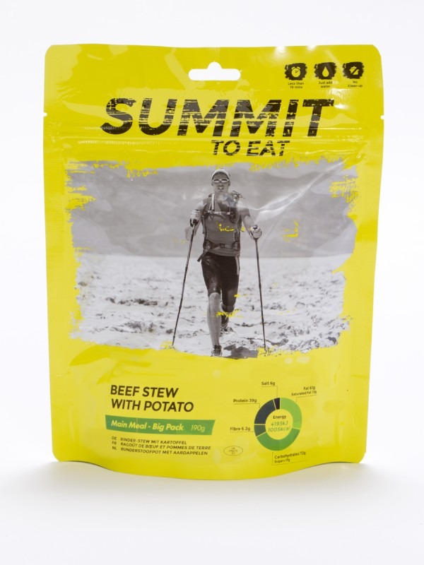 Aardappelen (39%), Rundvleesreepjes (10%), in blokjes gesneden wortelen (11%), groene bonen (11%), gesnipperde ui (11%), raapzaadolie, tomatenpuree, maïzena, zout, witte peper.